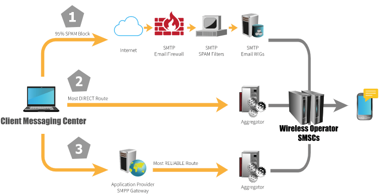 - Offers direct connections to all users within its network and SMS is generally limited to each carrier subscribed to.